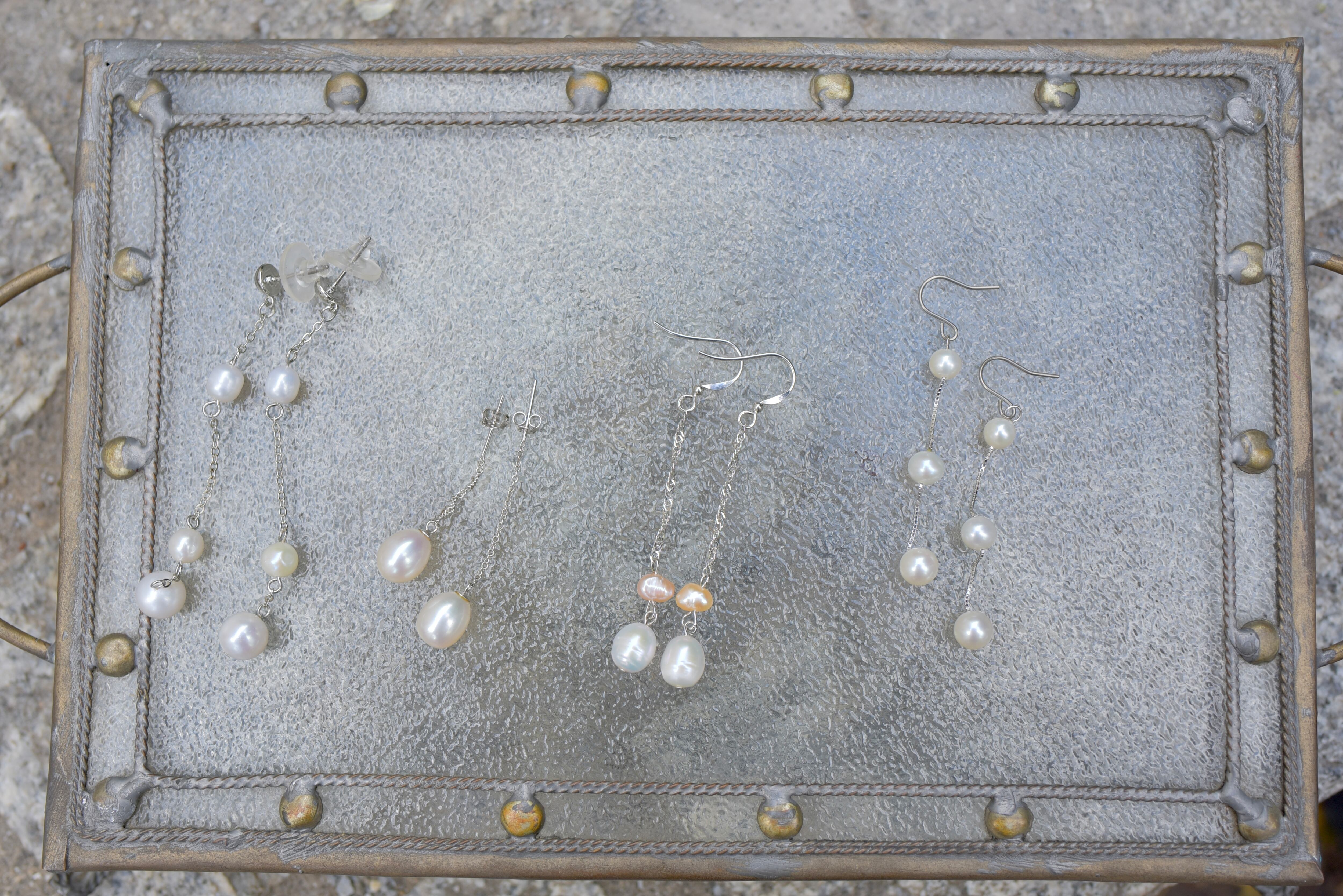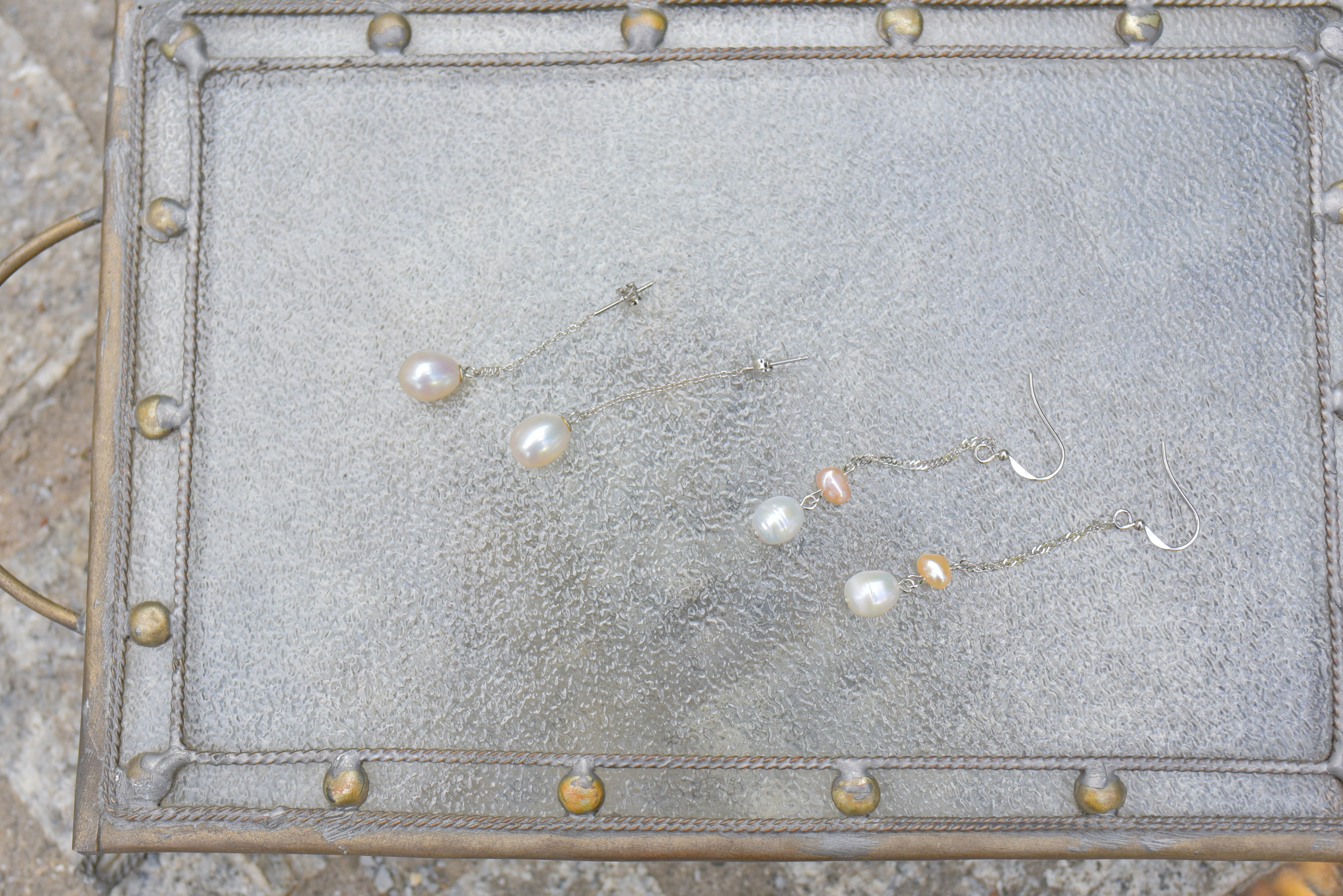 2パールドロップロングピアス
