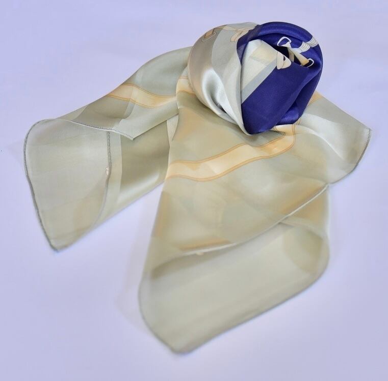 ネイビーと淡いグリーンがメインカラーになったスカーフ