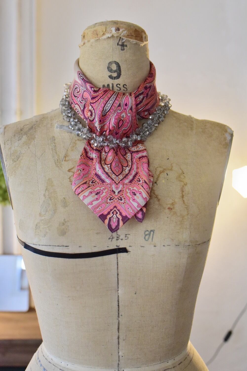 透明感があるネックレスなので、スカーフと合わせて光沢を添えたりアレンジにも使いやすい。