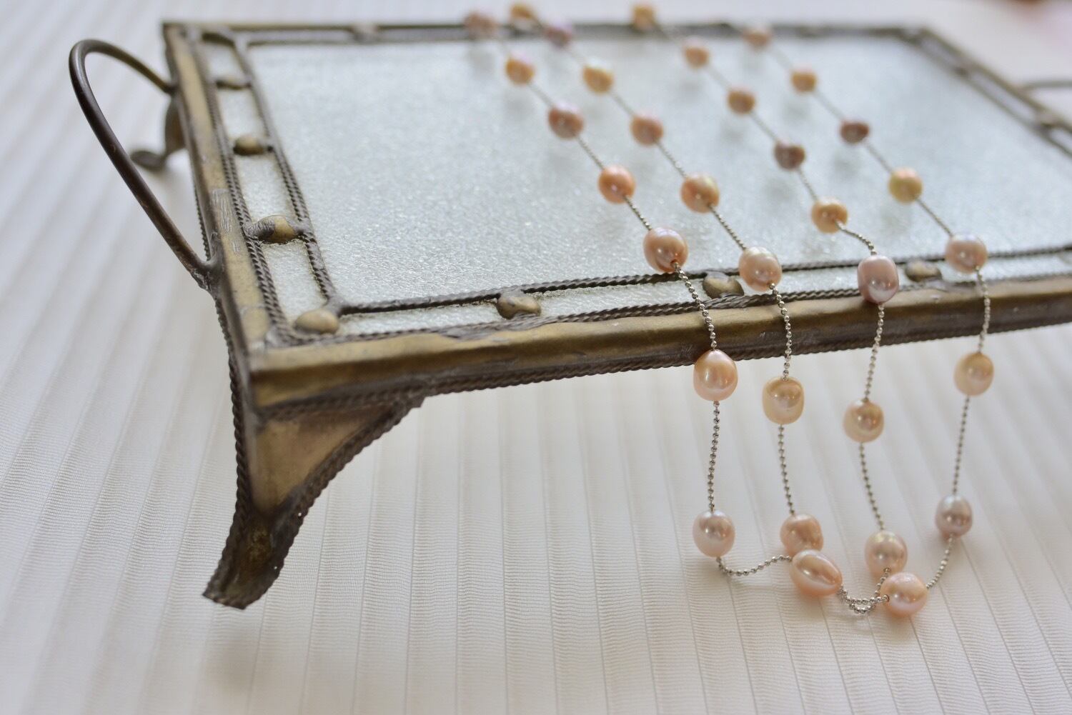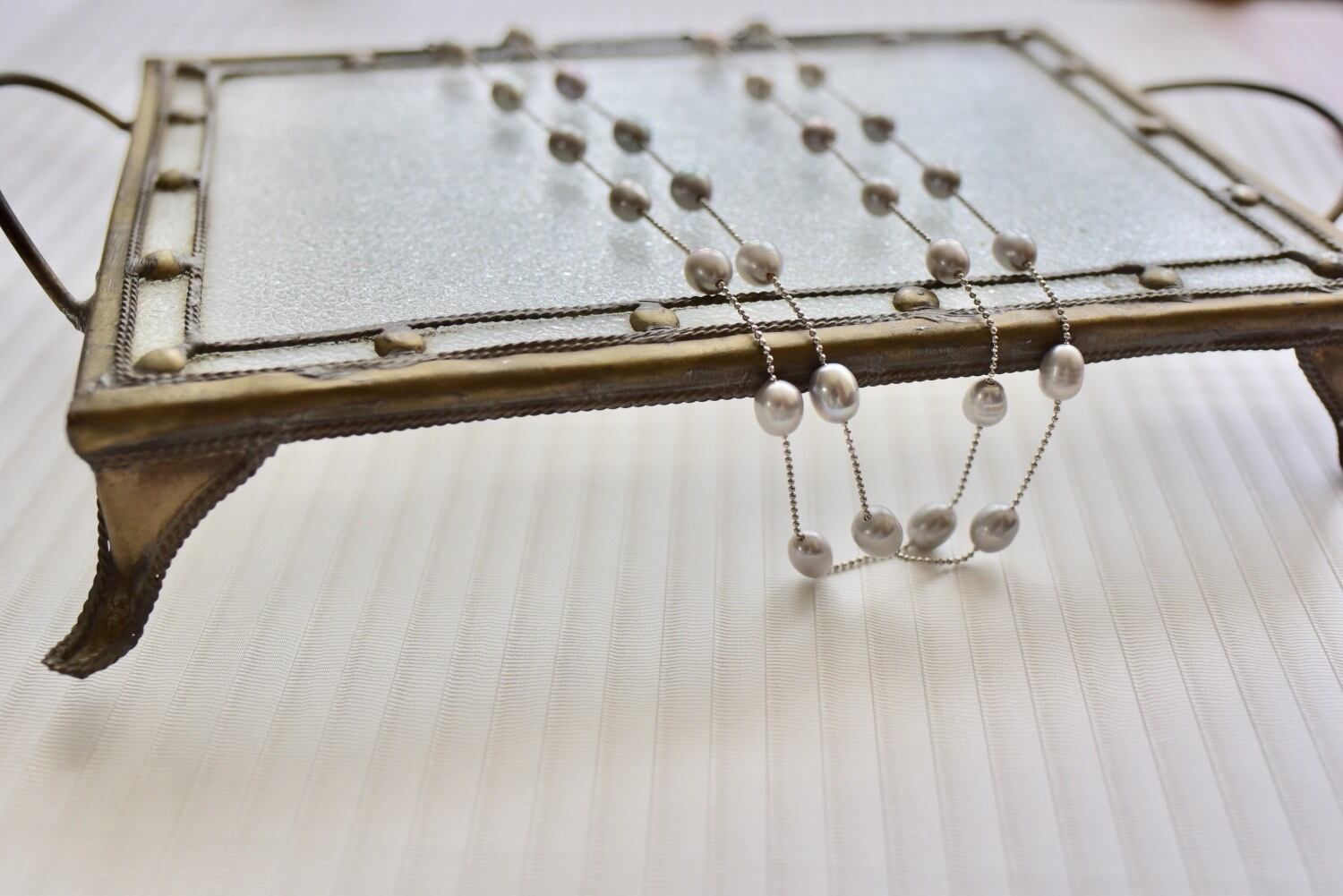 パールを駅、チェーンを線路に見立ててステーションネックレスというデザイン名で呼ばれています。