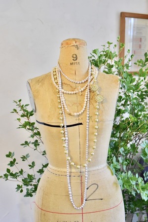 超ロングのパールネックレスは、その昔一斉を風靡したテレビドラマ