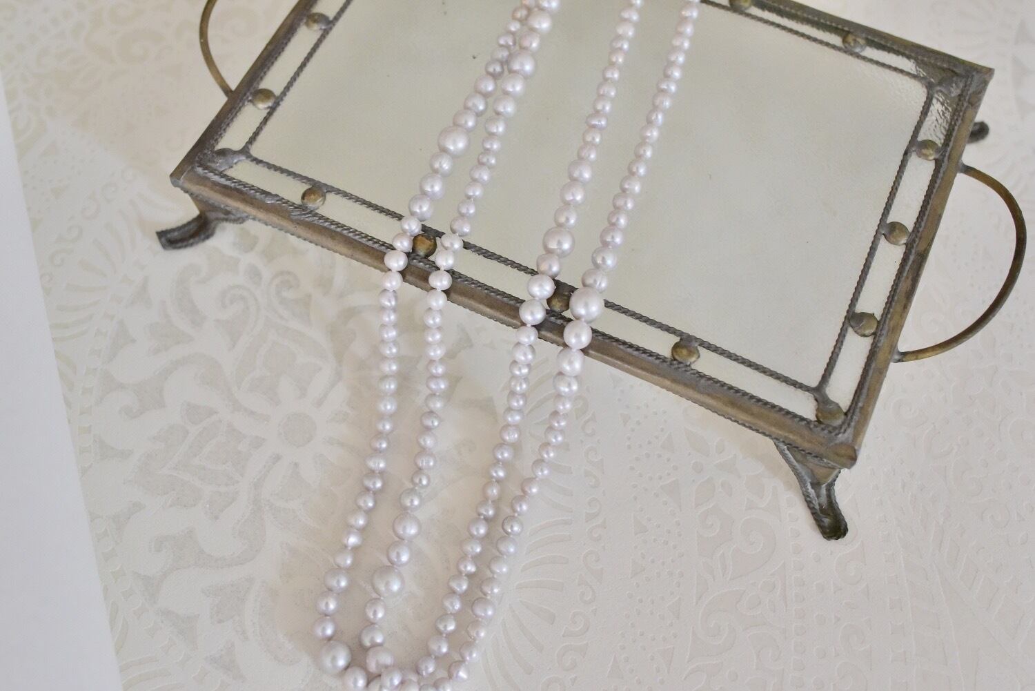 スーパーロングパールネックレス グレー