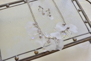 キラッと光るパーツと組み合わされて、涼しげに光ります。
