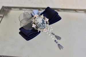 カメオが高級感あり、上品なネイビーリボンにまとめられています。