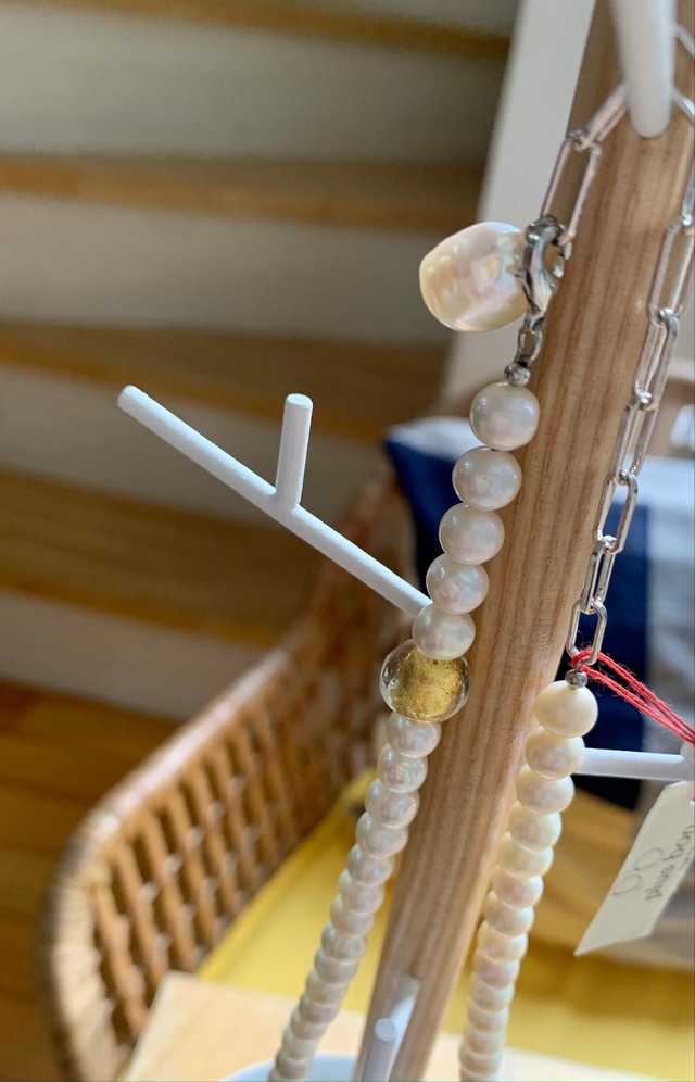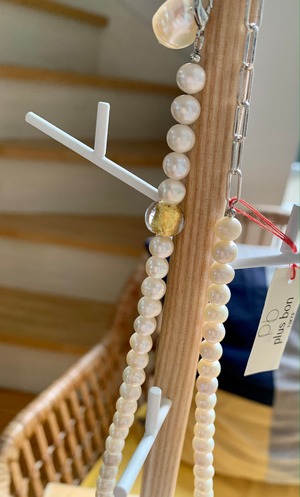 全部がパールではなく、チェーンと素材ミックスになっているのと