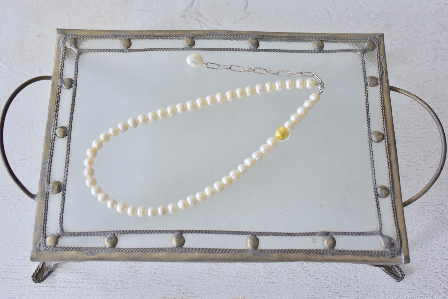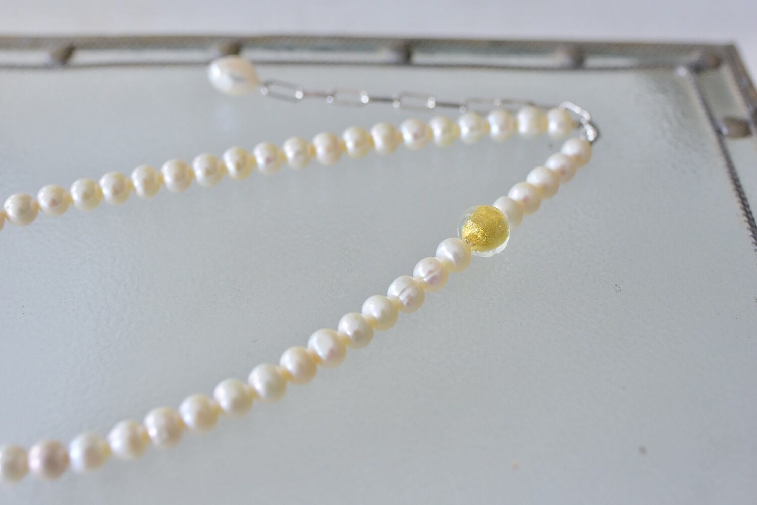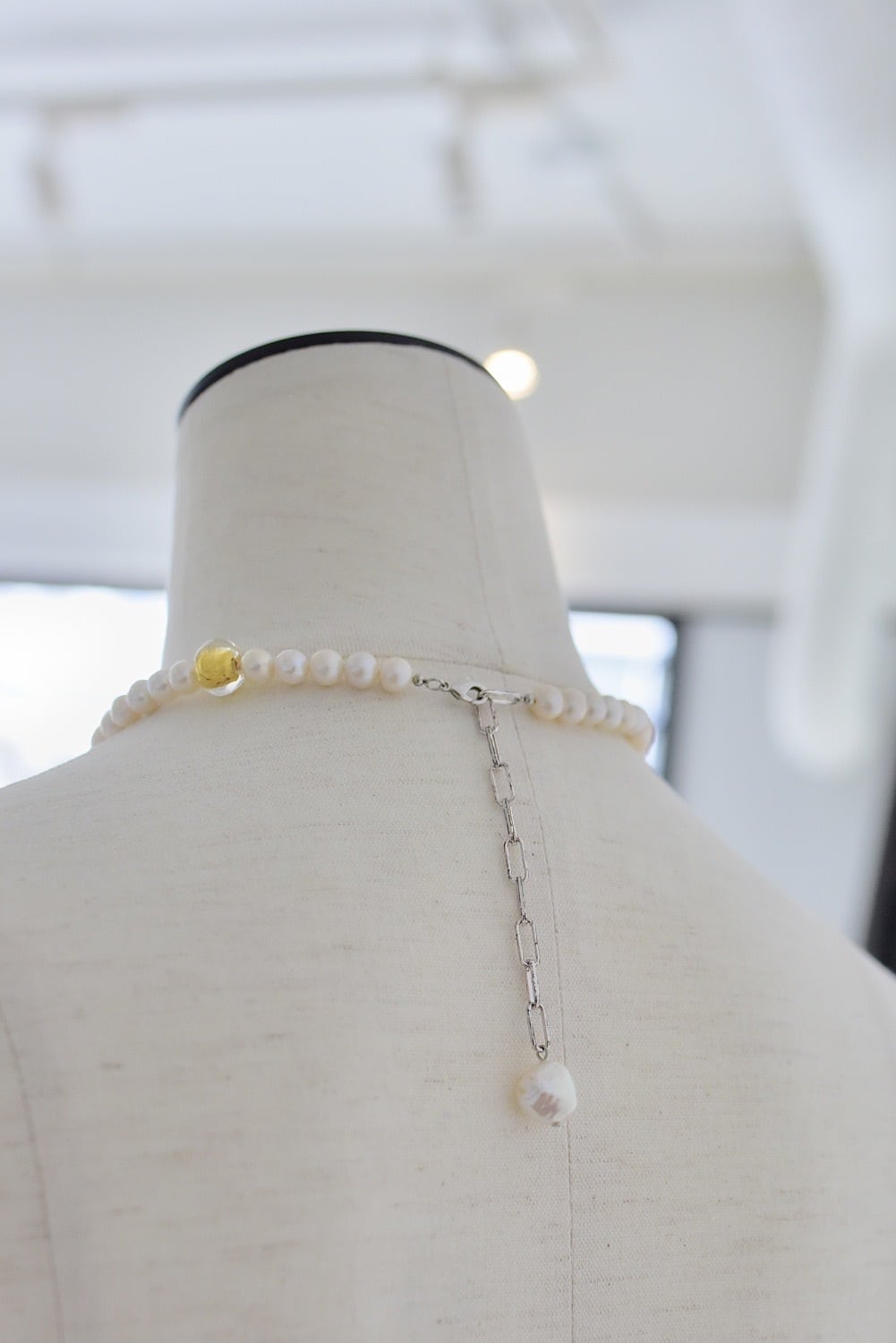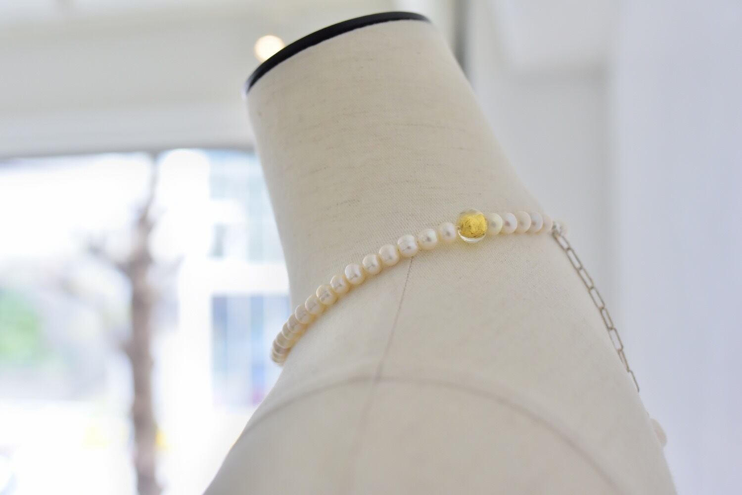 シルバーチェーン+イエロービーズパールネックレス:plus bon