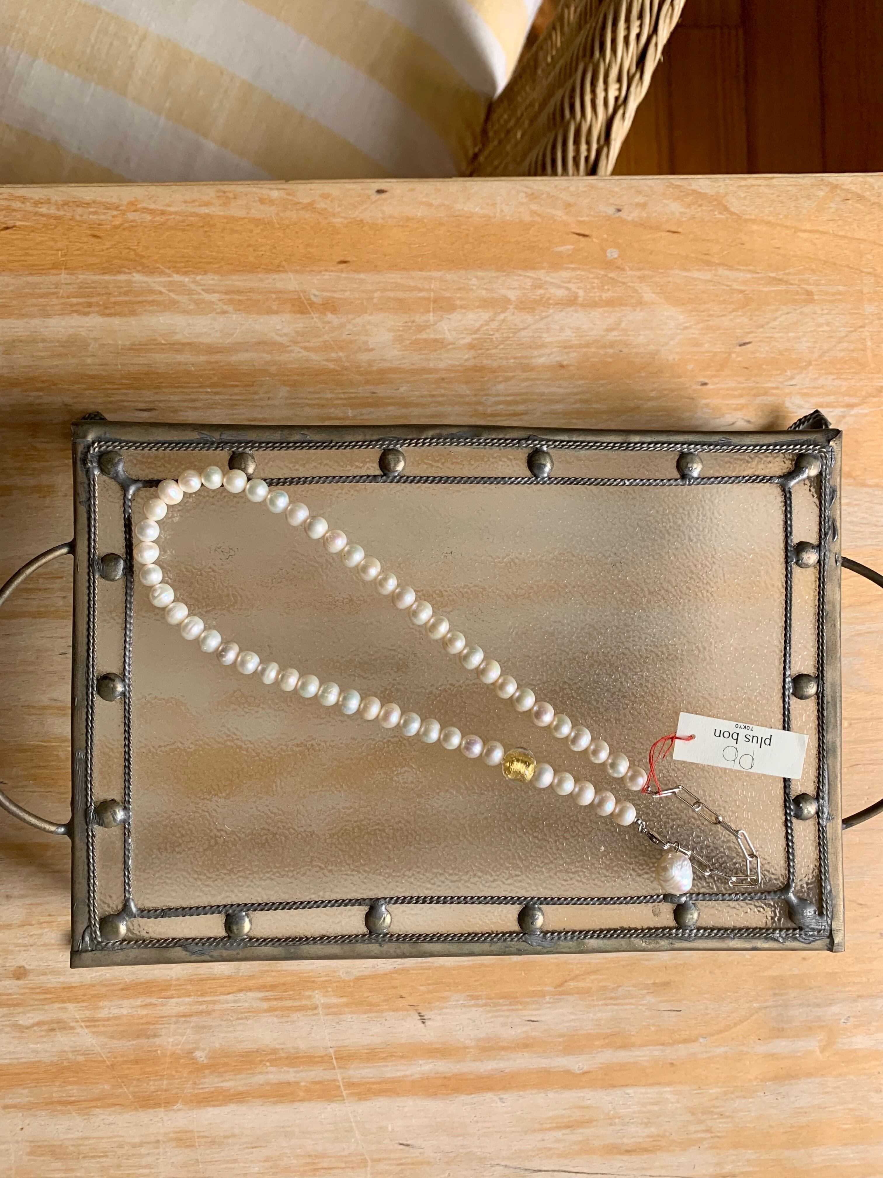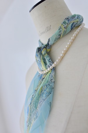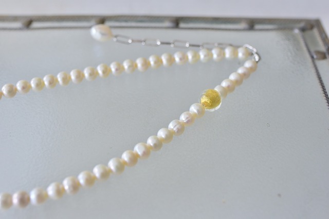 正面から見ると粒が大きめで存在感があるパールのネックレス。