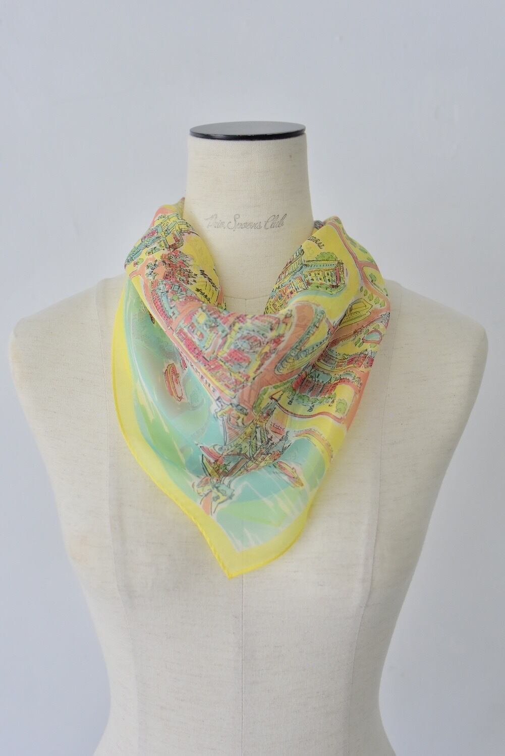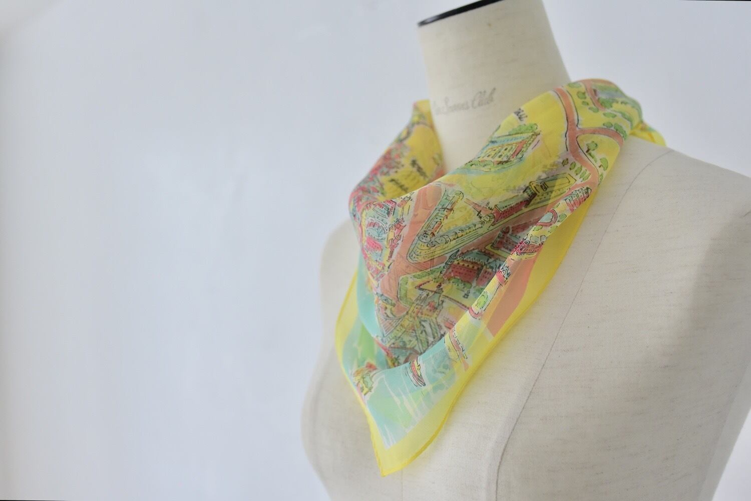 鮮やかな黄色が映えるプチスクエアスカーフ。透け感のある柔らかい素材で、軽やかな風を感じさせてくれるアイテムです。薄い素材なので日差しが気になる夏場の首周りにあしらうのも、日焼け対策としてお勧めです。